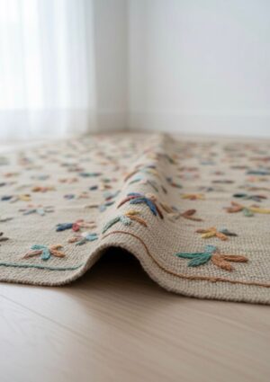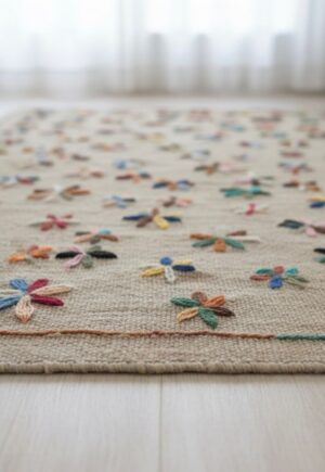 This stunning hand-embroidered Suzani kilim rug showcases timeless craftsmanship and cultural artistry. Every stitch is carefully embroidered by skilled artisans, resulting in a unique and intricate floral design that reflects the centuries-old Suzani tradition.