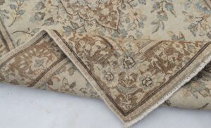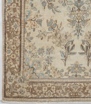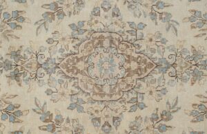 The soft, muted color palette of this rug, featuring gentle creams, subtle blues, and warm browns, creates a calming and sophisticated ambiance. It effortlessly complements a variety of decor styles, adding a touch of understated elegance to any space. Whether placed in a living room, bedroom, or dining area, it becomes a focal point that inspires tranquility and appreciation for timeless design.