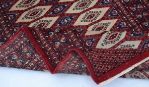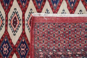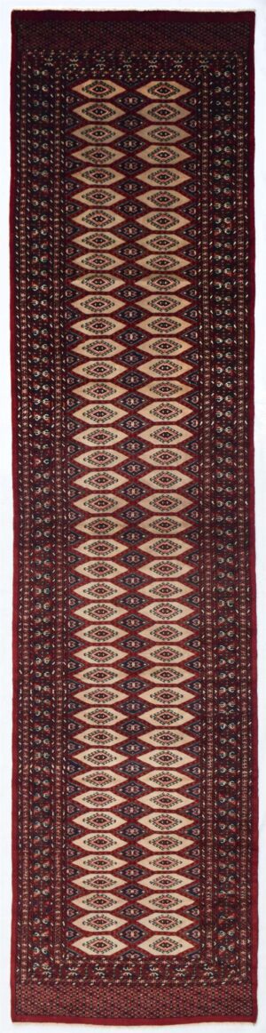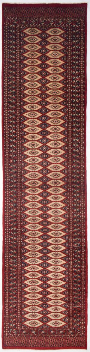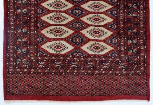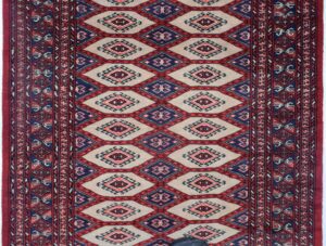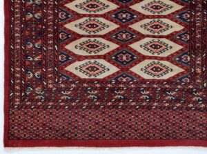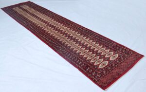 With its striking combination of deep reds, warm creams, and contrasting blacks, this runner rug effortlessly adds warmth and sophistication to any space. Whether used in a hallway, entryway, or alongside a bed, it becomes an instant focal point, sparking conversation and admiration.
